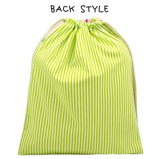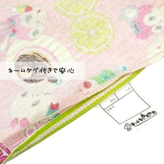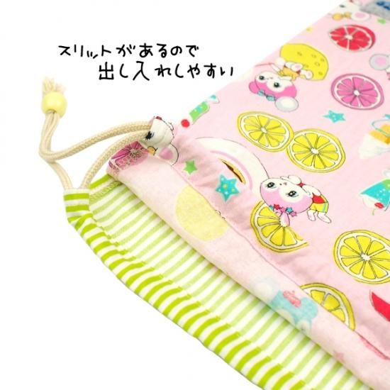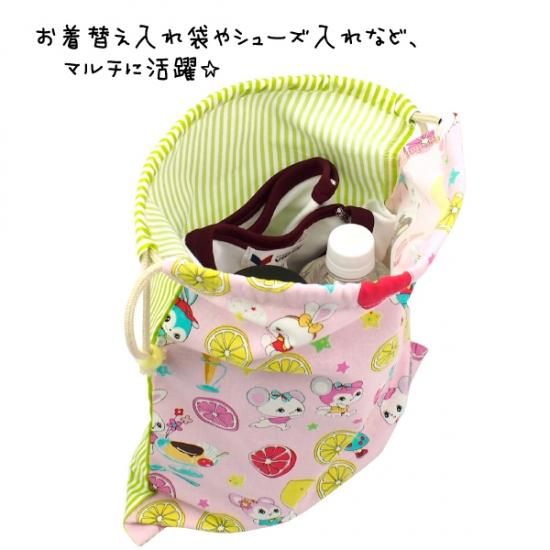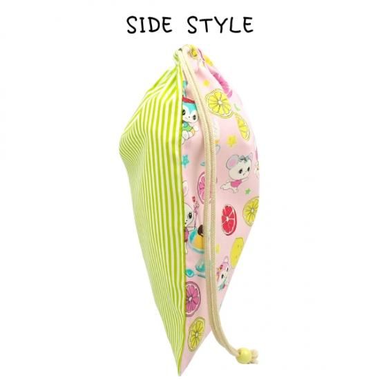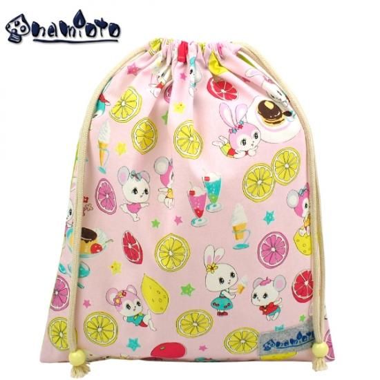■商品説明文オシャレキッズ・オシャレママ必見!キッズアイテムnamiotoの【喫茶レモン シュガーピンク 巾着(大)】が登場!