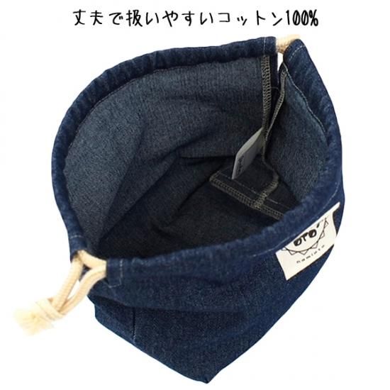 おしゃれキッズ・おしゃれママ必見!キッズアイテムnamioto#(シャープ)の【インディゴブルー(プレーンカラー)】 巾着中。