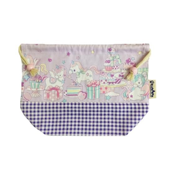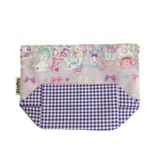 ユニコーン パープル 巾着中 弁当箱入れ マチ有りお弁当袋 ネームタグ付き ハンドメイド 手作り 日本製
