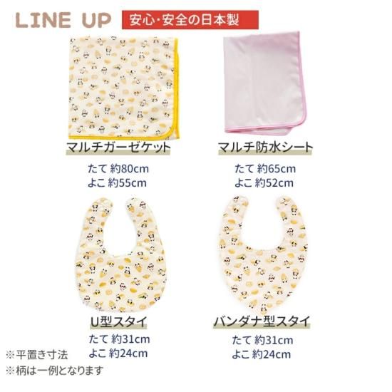 ●マルチガーゼケット1枚、マルチ防水シート1枚、スタイ2枚が入った、お得なセットです