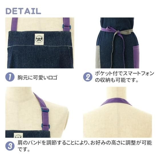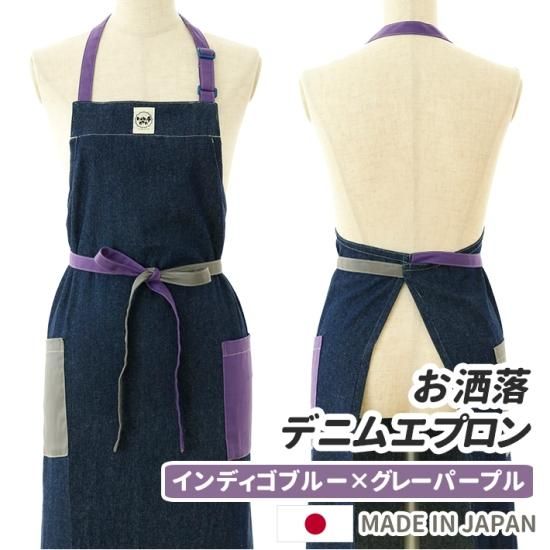 インディゴブルー×グレーパープル お洒落デニムエプロン カフェエプロン
