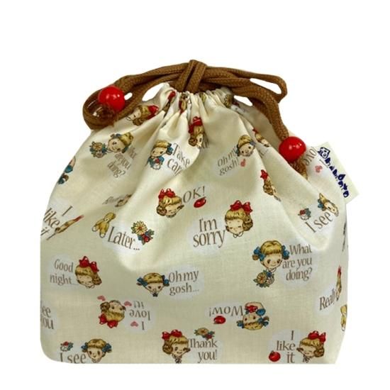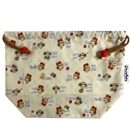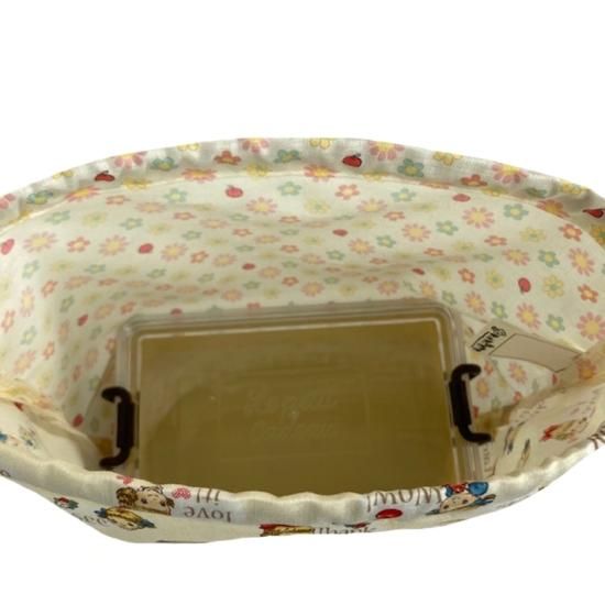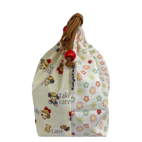選べる♪ 巾着中 弁当箱入れ マチ有りお弁当袋 ネームタグ付き ハンドメイド 手作り 日本製