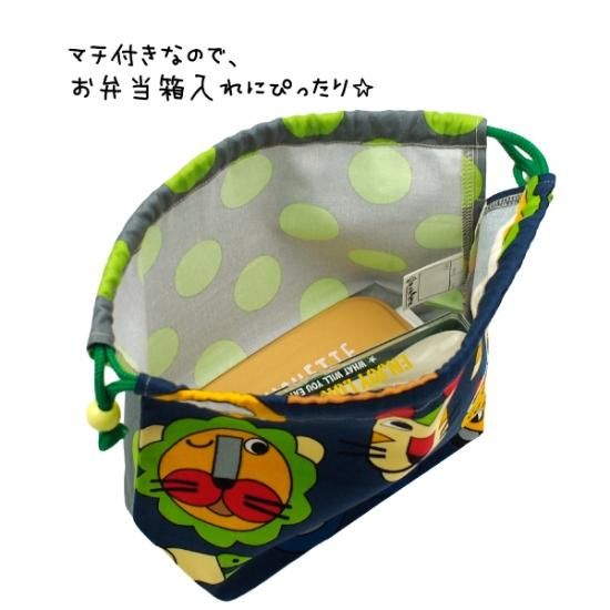 選べる♪ 巾着中 弁当箱入れ マチ有りお弁当袋 ネームタグ付き ハンドメイド 手作り 日本製