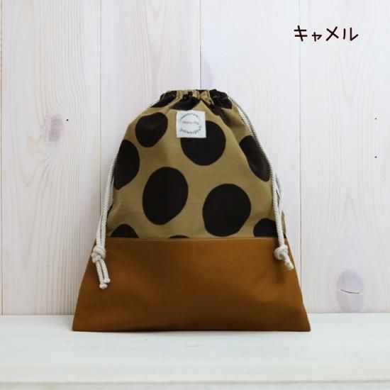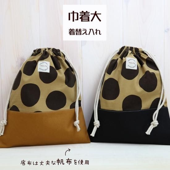 底布に帆布を使用した大きめ巾着が新登場1. 底布には耐久性抜群の帆布を使用