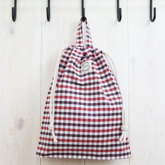 持ち手付き巾着大【オーガニックコットンチェック レッド】体操服入れ 着替え袋