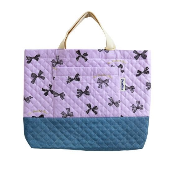 40cm×30cm マチ付き レッスンバッグ (キルティング) リボン 入園入学 通園通学