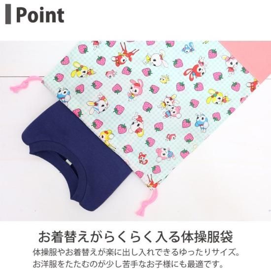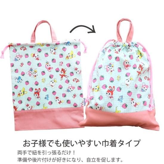 巾着 大 【ストロベリーランド ミント】 体操服袋 体操服入れ お着替え袋 お着替え入れ ネームタグ付き 男の子 女の子 2トーン