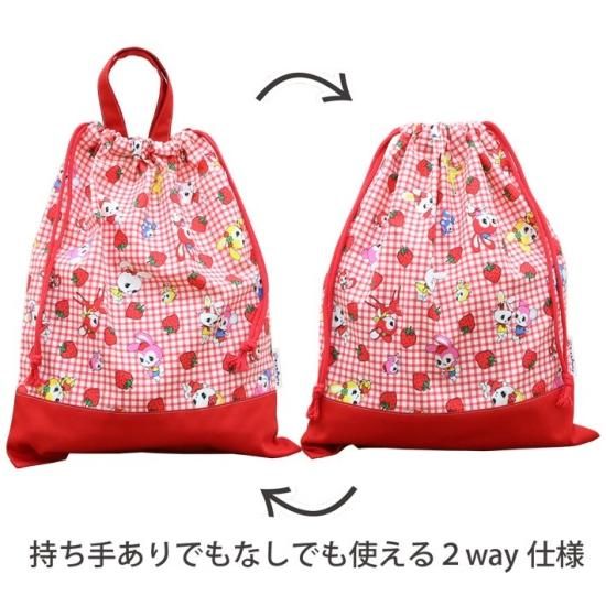 巾着 大 【ストロベリーランド レッド】 体操服袋 体操服入れ お着替え袋 お着替え入れ ネームタグ付き 男の子 女の子 2トーン