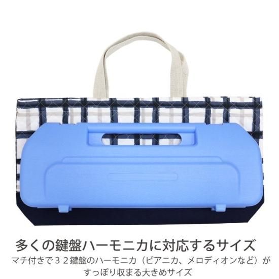 マチ付きで32鍵盤のハーモニカ(ピアニカ、メロディオンなど)がすっぽり収まる大きめサイズ。